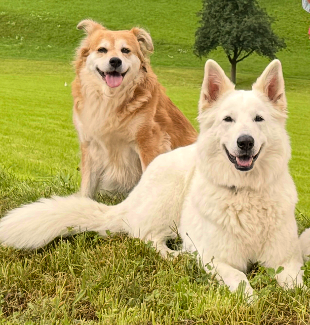 Unsere treue "Nele" (links im Bild) liebevoll "Nelchen" genannt ist immer noch bei uns - und wir können uns keinen schöneren Alltag vorstellen.